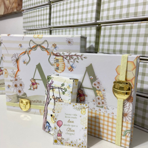 Kit Luxo Ursinho Pooh | Caixa Cartonada com Livro de Atividades e Giz