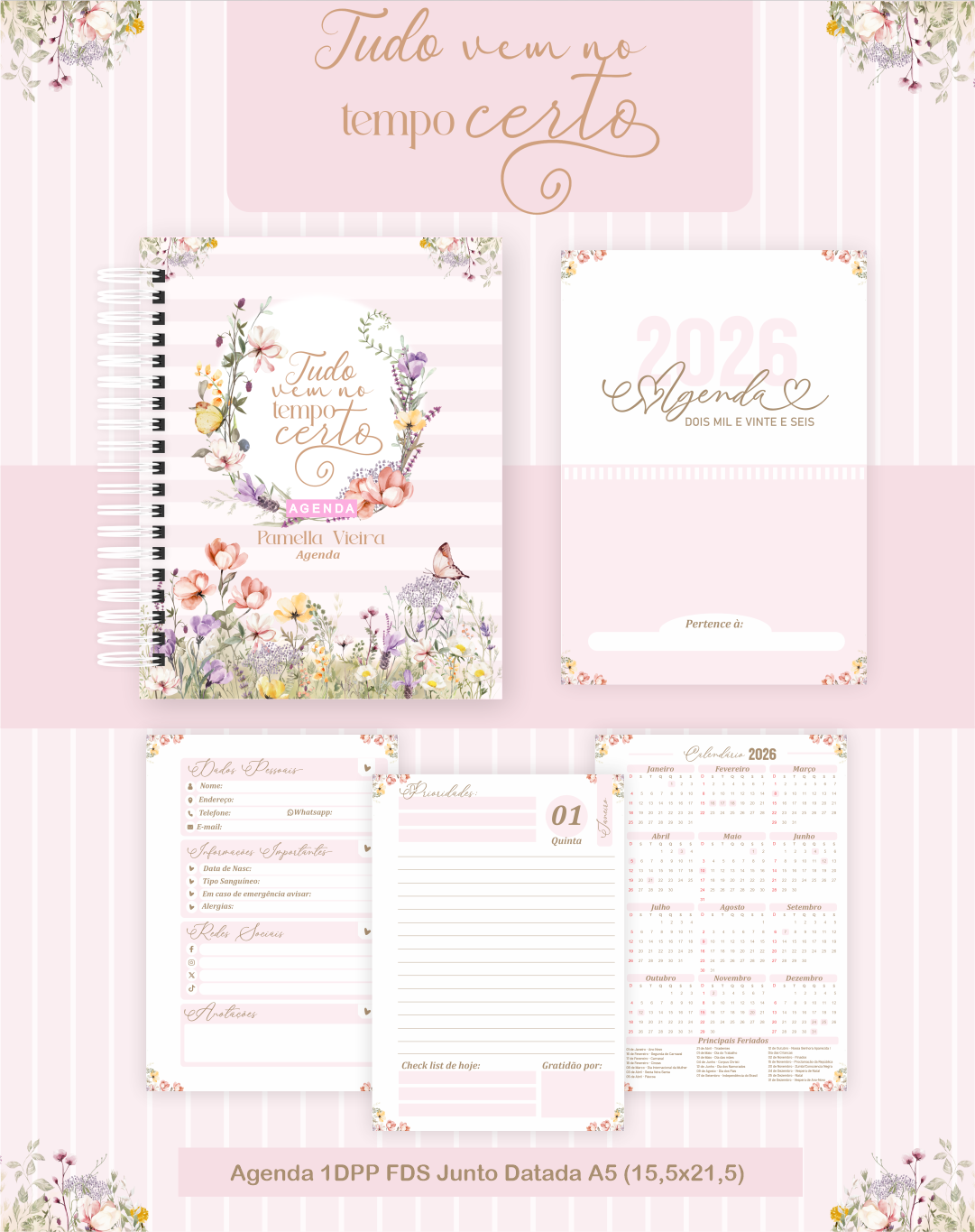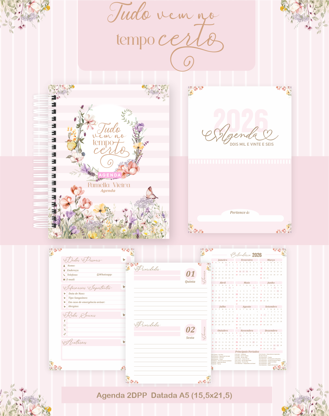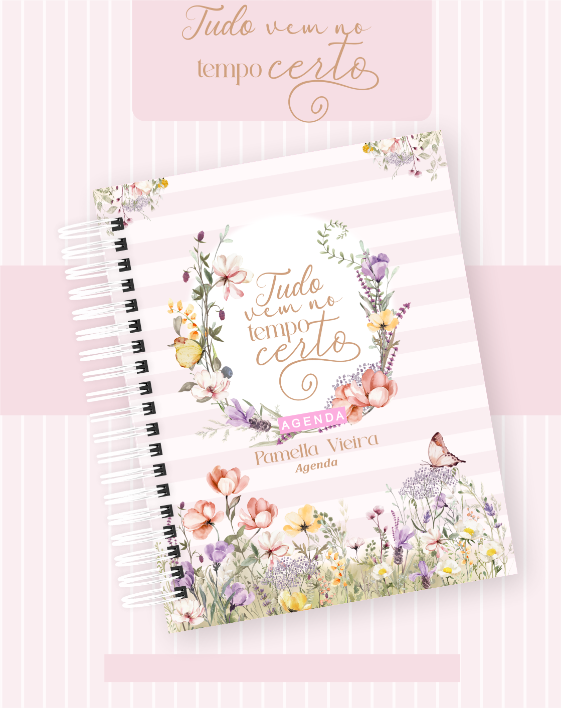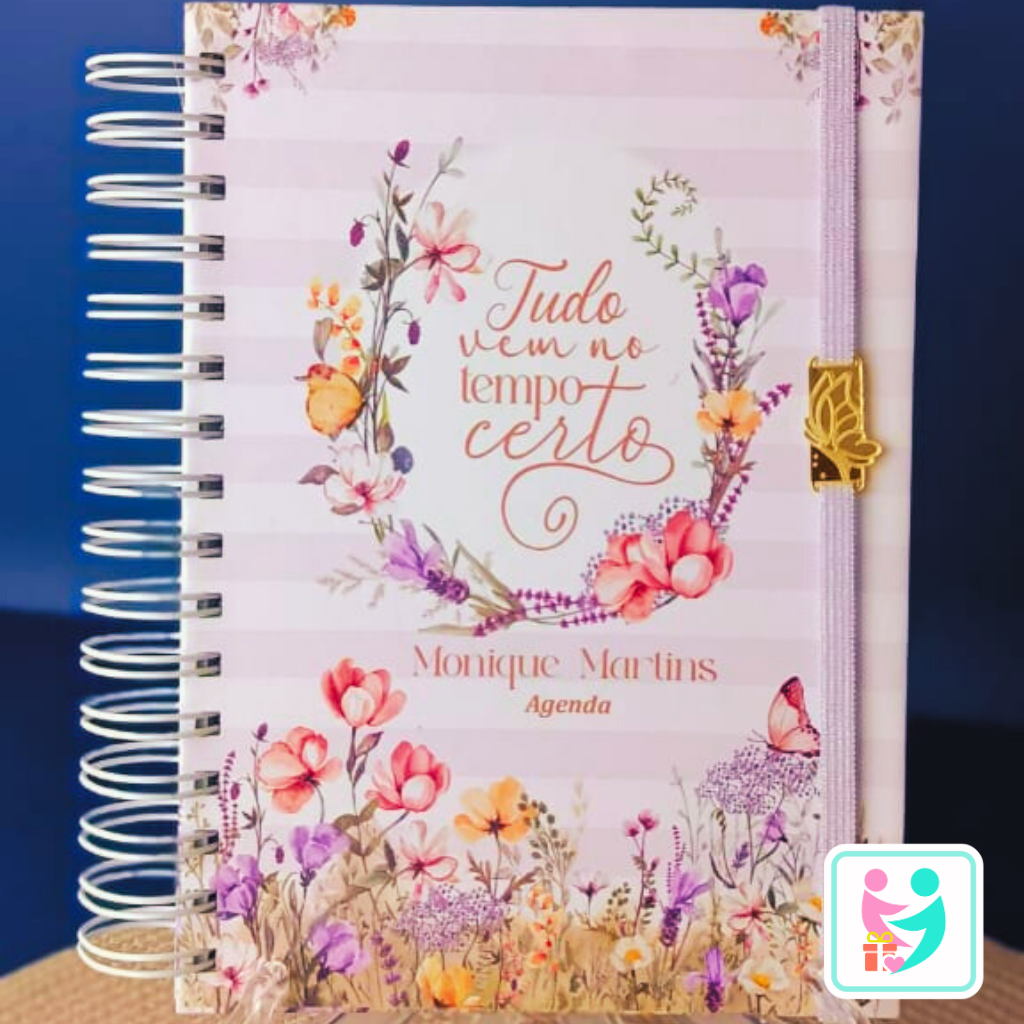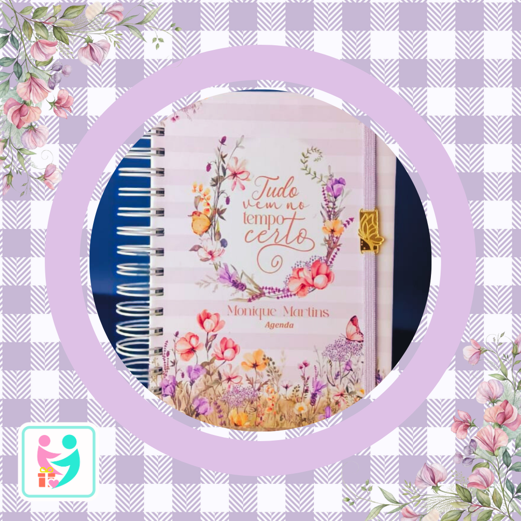 Personalização Exclusiva: Sua agenda se torna única com seu nome impresso na capa em uma tipografia sofisticada.