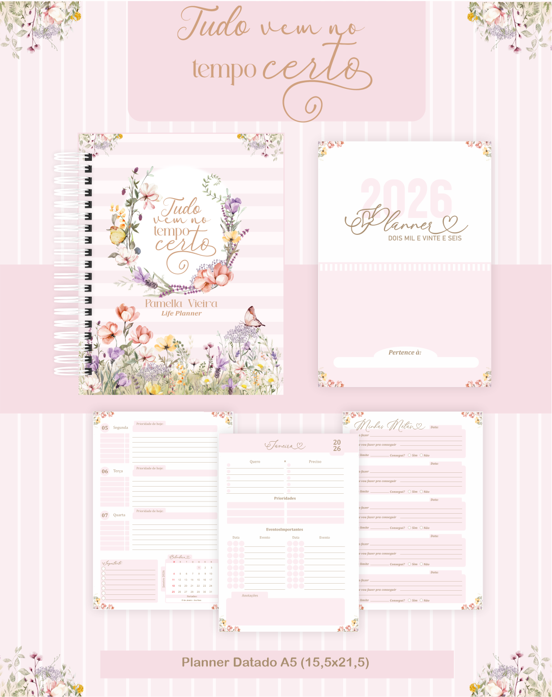 Encontre o equilíbrio perfeito entre seus sonhos e o tempo da vida. A nossa linha Tempo Certo foi desenhada para quem valoriza a jornada tanto quanto o destino, unindo um visual poético a uma estrutura de planejamento impecável para o seu 2026.