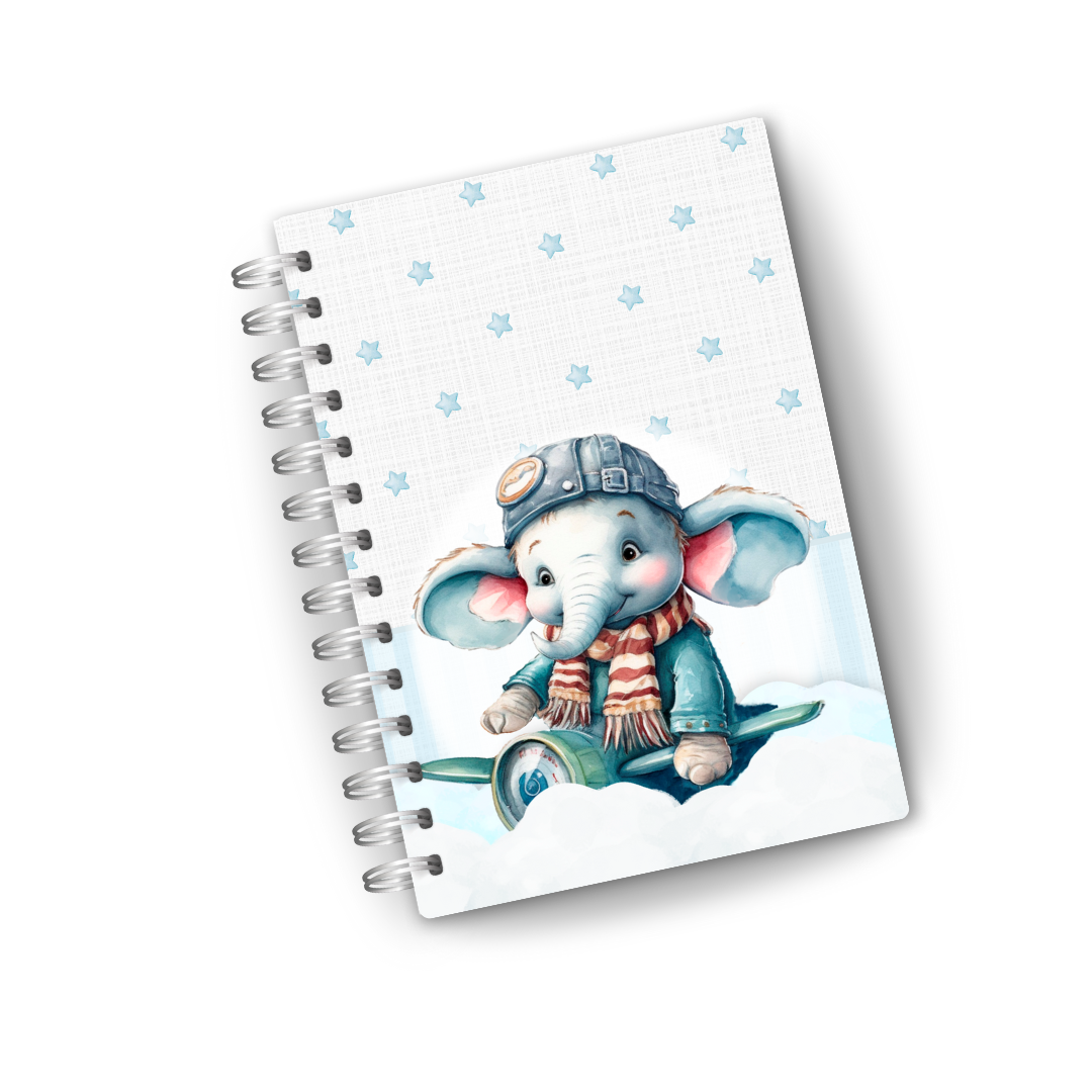 Caderneta de Vacinação Personalizada | Tema Elefantinho Aviador (Encadernação Wire-o)