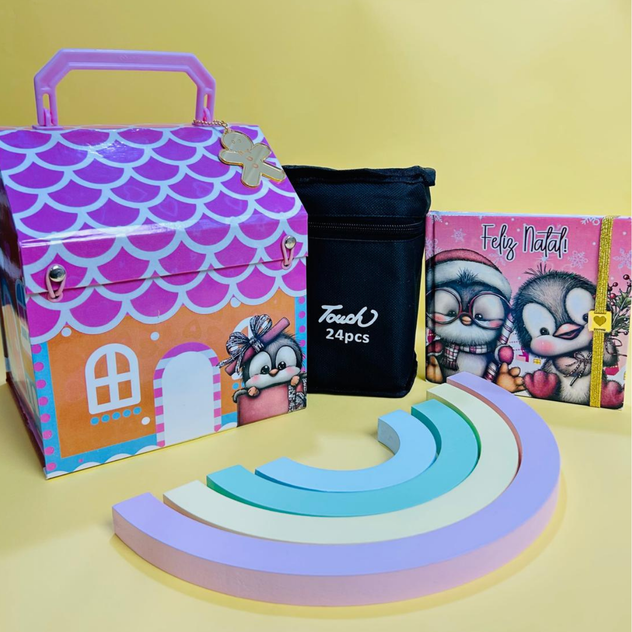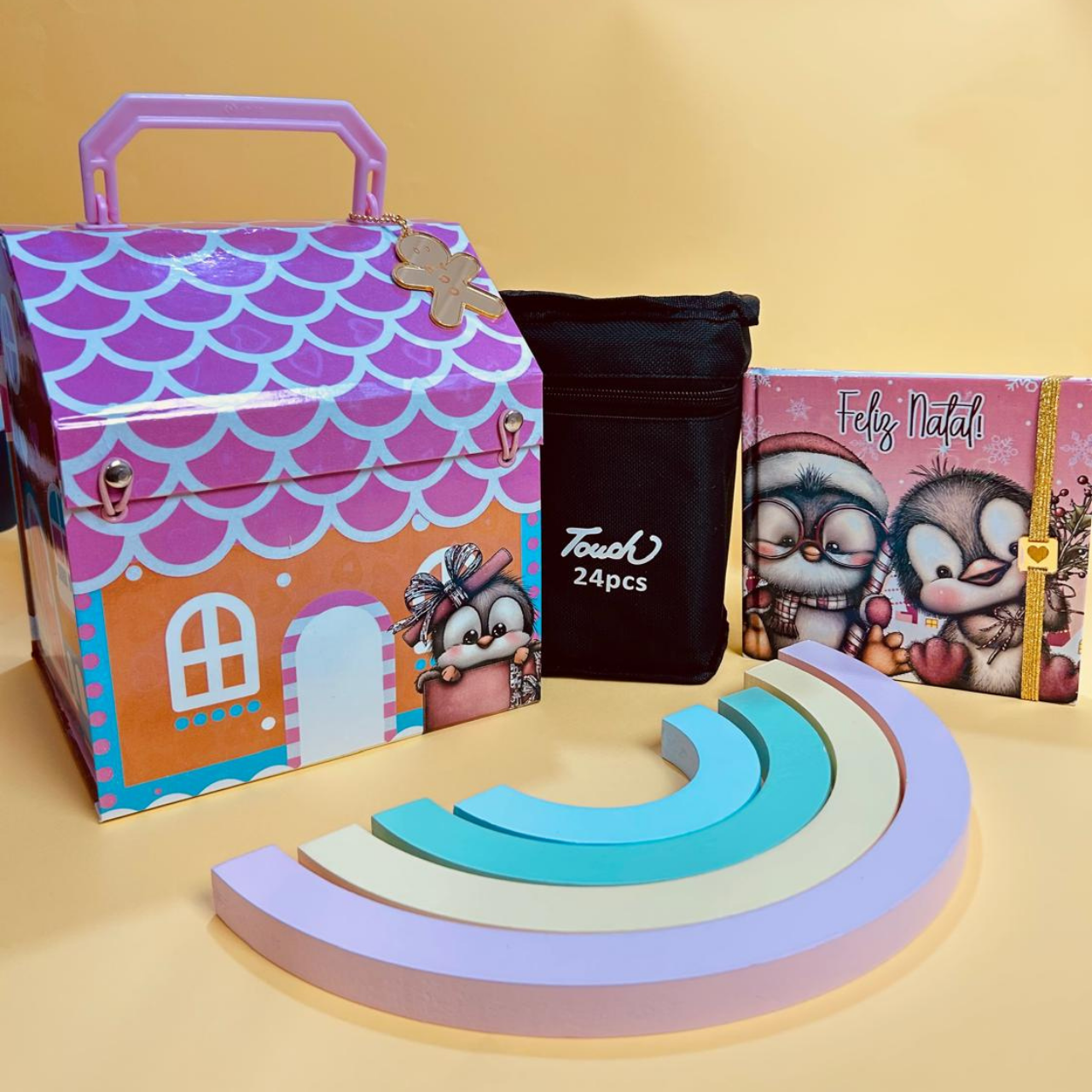 É a união da embalagem perfeita com uma atividade super divertida! As fotos mostram as lindas possibilidades de montagem, como a maleta rosa de pinguim, a versão “pinte-você-mesmo” (para a criança colorir a própria caixa!) e os adoráveis livrinhos com desenhos natalinos.